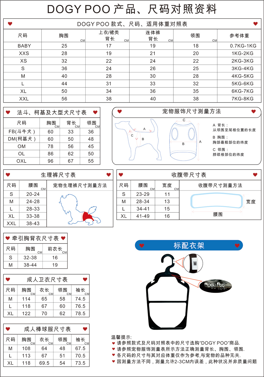 DOGY POO產品、尺碼對照資料